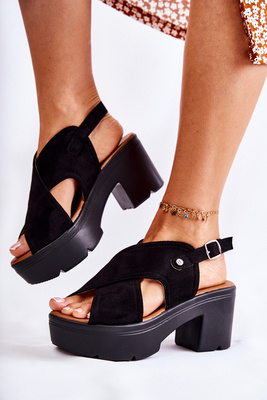 Sandały Modne Wysoki Słupek Czarne Lovelace