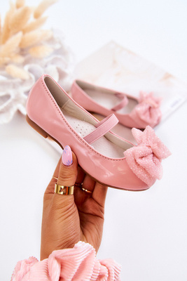 Balerinki Dziecięce Lakierowane Ozdobna Kokarda Różowe Zolly