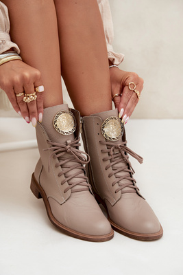 Botki Skórzane Suwak Beżowe Zazoo 2785/079