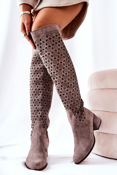 Zamszowe Kozaki Z Ażurowym Wzorem Jasnobrązowe Eldime
