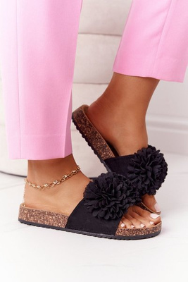 Klapki Na Korkowej Podeszwie Czarne Flowerbomb