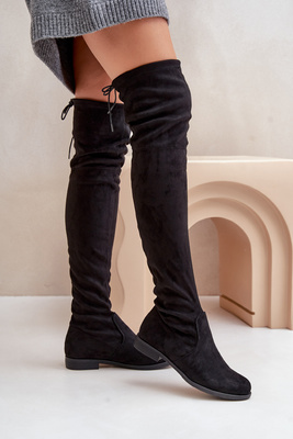 Kozaki Eko Zamszowe Płaski Obcas Cholewka Za Kolano Czarne Linnithia