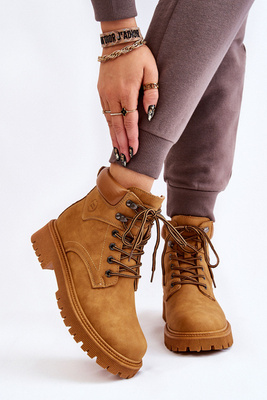 Botki Trapery Damskie Ocieplane Sznurowane Camel Halfway
