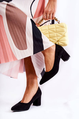 Czółenka Klasyczne Zamszowe Słupek Czarne Lency
