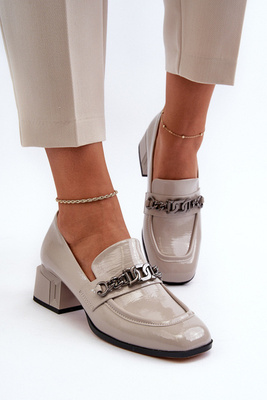 Półbuty Lakierowane Damskie Słupek D&A MR38-973 Beżowe
