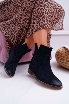 Botki Damskie Laura Messi 1890 Skóra Zamsz Czarne Darmah