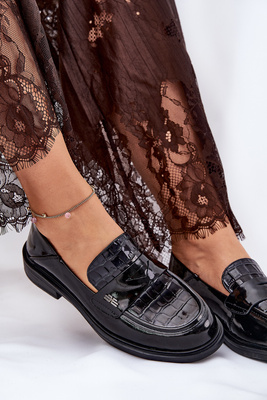 Eleganckie Mokasyny Damskie Skórzane Lakierowane Czarne Vinceza 91125