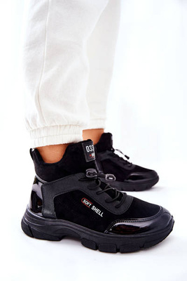 Wysokie Skórzane Ocieplane Buty Sportowe Czarne Merit