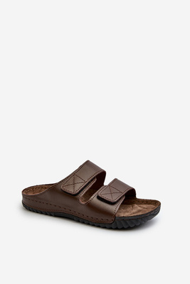 Męskie Wygodne Klapki Z Paskami Na Rzepy Ciemnobrązowe Inblu FM00001U