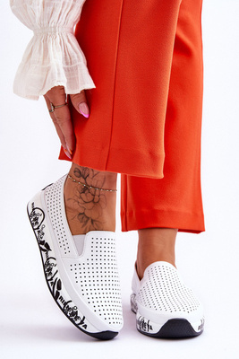 Tenisówki Damskie Ażur Skóra Slip-On Białe Sorito