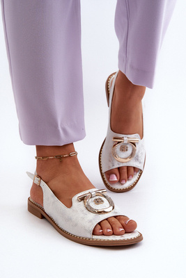 Sandały Damskie Złota Ozdoba Płaski Obcas Srebrne S.Barski KV24-053