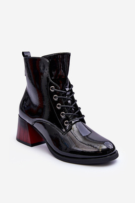 Botki Lakierowane Damskie Obcas Czarne Luloshe 58127