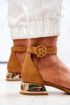 Sandałki na obcasie świetnie sprawdzą się podczas wielu stylizacji z sukienkami lub eleganckimi spodniami w roli głównej. Dzięki obcasowi nogi wyglądają na bardziej smukłe. Koniecznie musisz je mieć! Wykonane z naturalnej skóry. Posiadają regulowany pasek zapinany na sprzączkę wokół kostki. Obcas w postaci słupka z lustrzanym elementem. Niskie oraz wygodne. Wkładka wykonana z naturalnej skóry.
