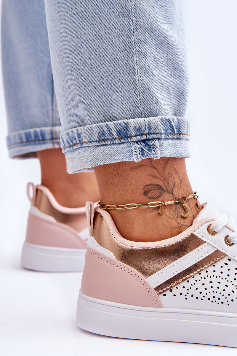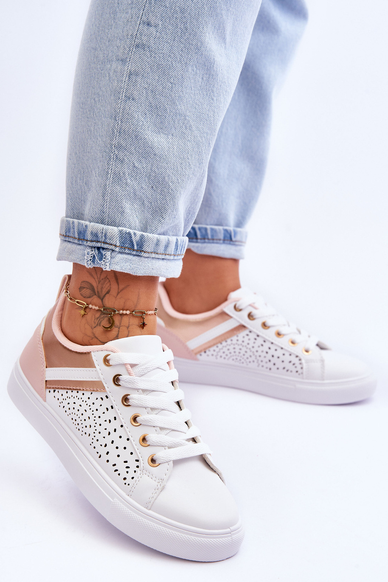 portowe Buty Klasyczne Ażurowy Wzór Białe-Różowo-Złote Happier