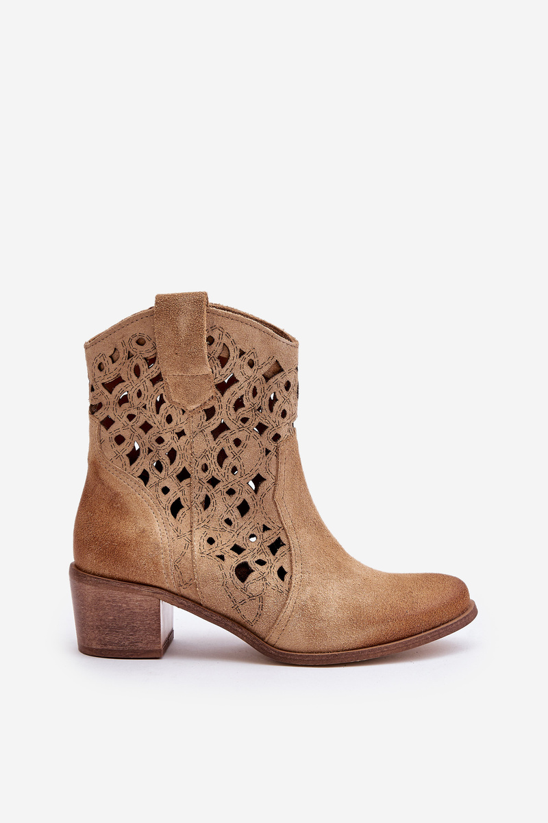 Ażurowe Botki Damskie Obcas Ażurowy Wzór Beżowe Lewski 3394/2
