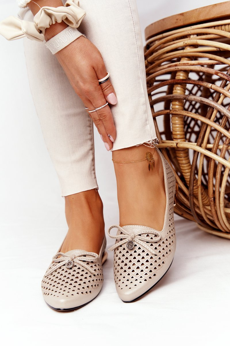 Ażurowe Mokasyny Na Złotym Obcasie Vinceza 21-10602 Złote
