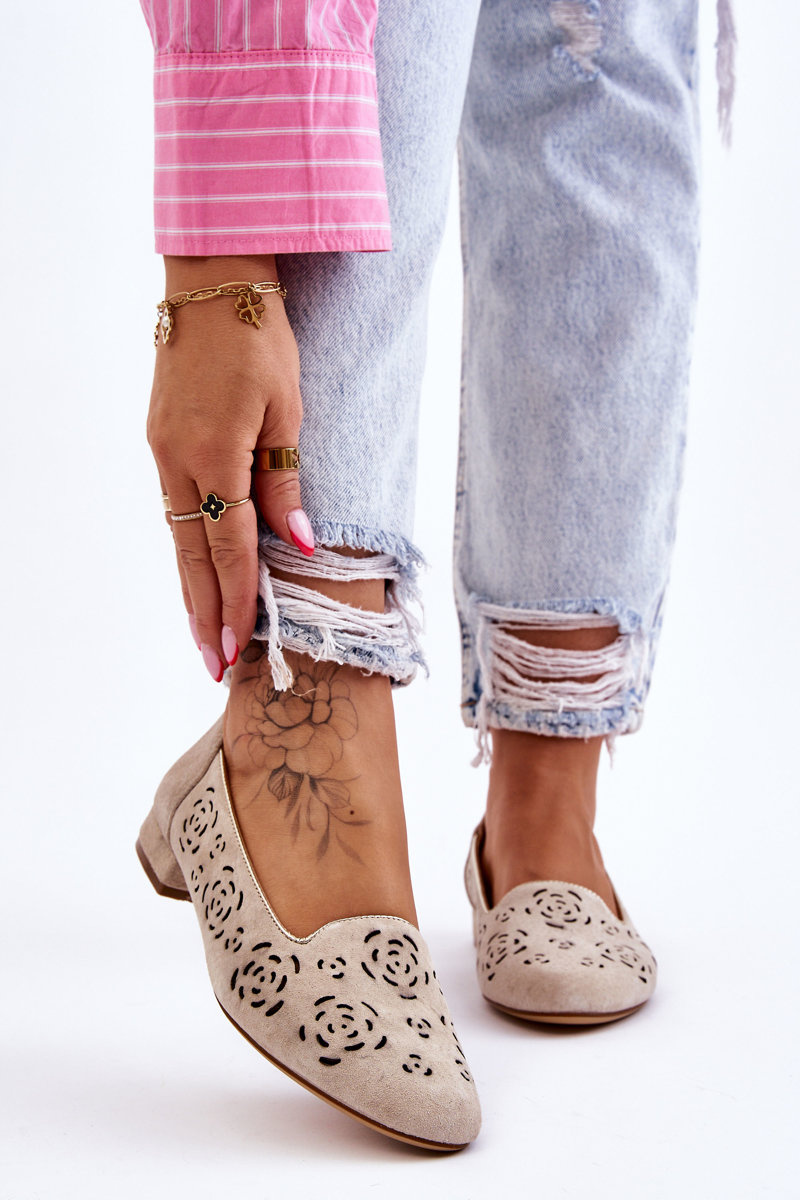 Ażurowe Mokasyny Sergio Leone BL627 Beżowe