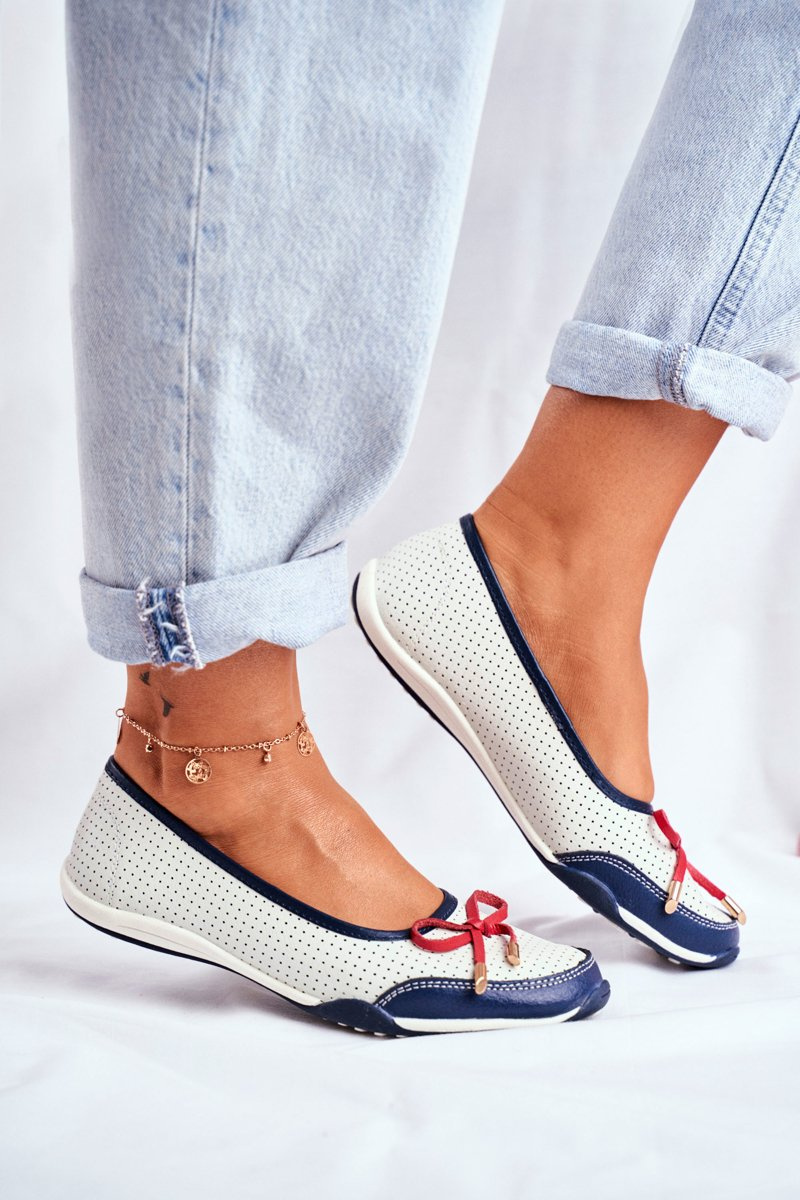 Opinie o Ażurowe Skórzane Baleriny Biało-Czerwone Erdola