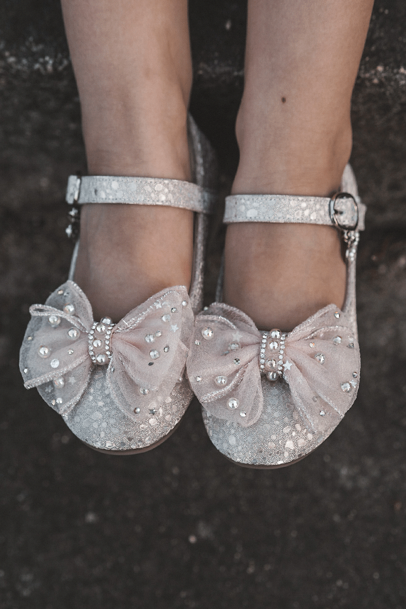 Balerinki to obuwie, które łączy w sobie elegancję i wygodę. Są idealne w sezonie wiosenno-letnim. Płaska podeszwa oraz odpowiedni materiał sprawiają, że dzieci czują się w nich niezwykle komfortowo. Wykonane z wierzchu z tworzywa sztucznego ozdobionego brokatem i błyszczącymi cętkami. Na przodzie posiadają elegancką kokardę ze zdobieniami. Model ten jest zapinany na rzep, co pozwoli na odpowiednią regulację obuwia do tęgości nóżki dziecka. Wkładka oraz wyściółka wykonane zostały z eko skóry. Na pasku znajduje się ozdobna sprzączka. Buciki osadzono na płaskim obcasie.