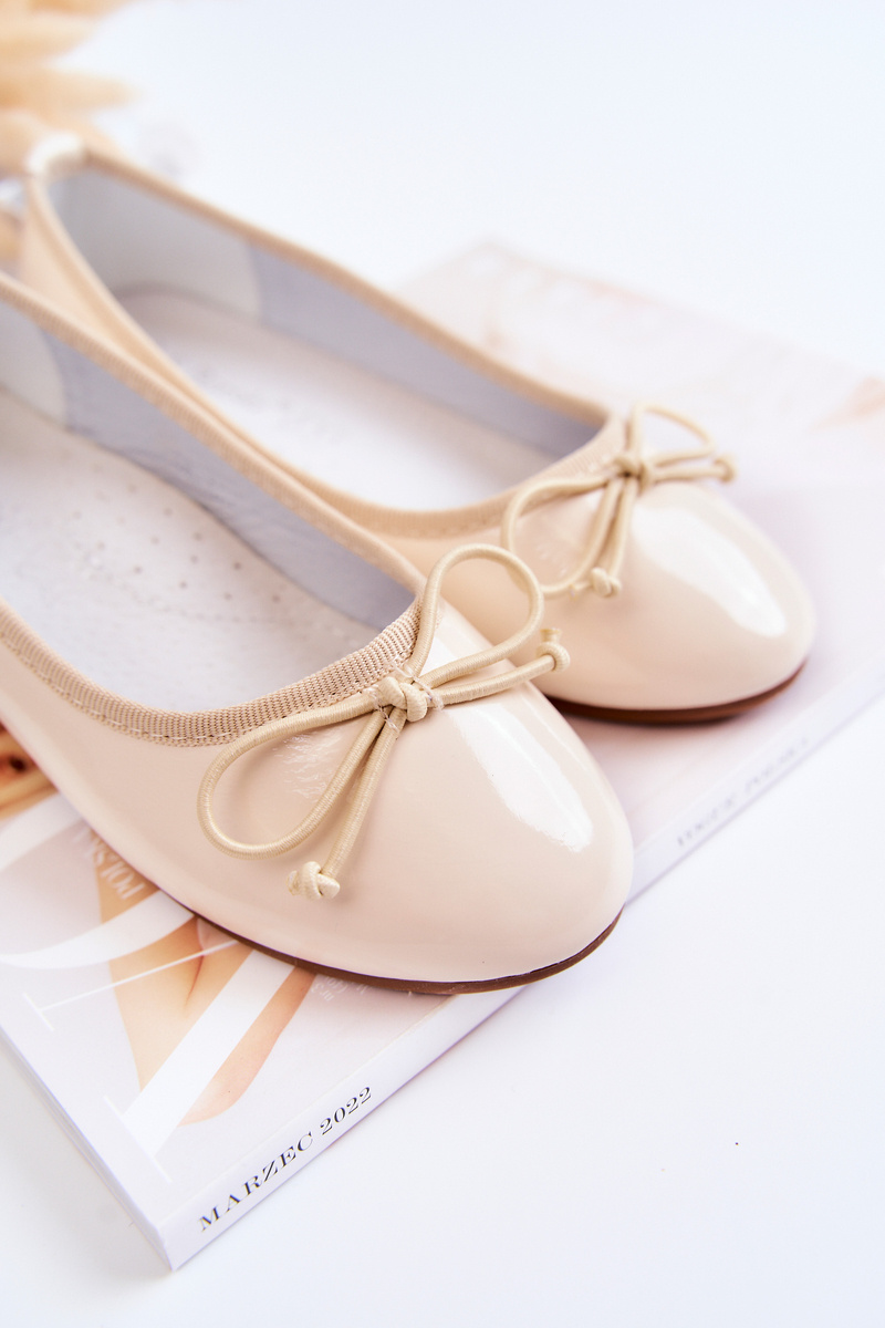 Balerinki Lakierowane Dziecięce Ozdobna Kokardka Beżowe Cassie