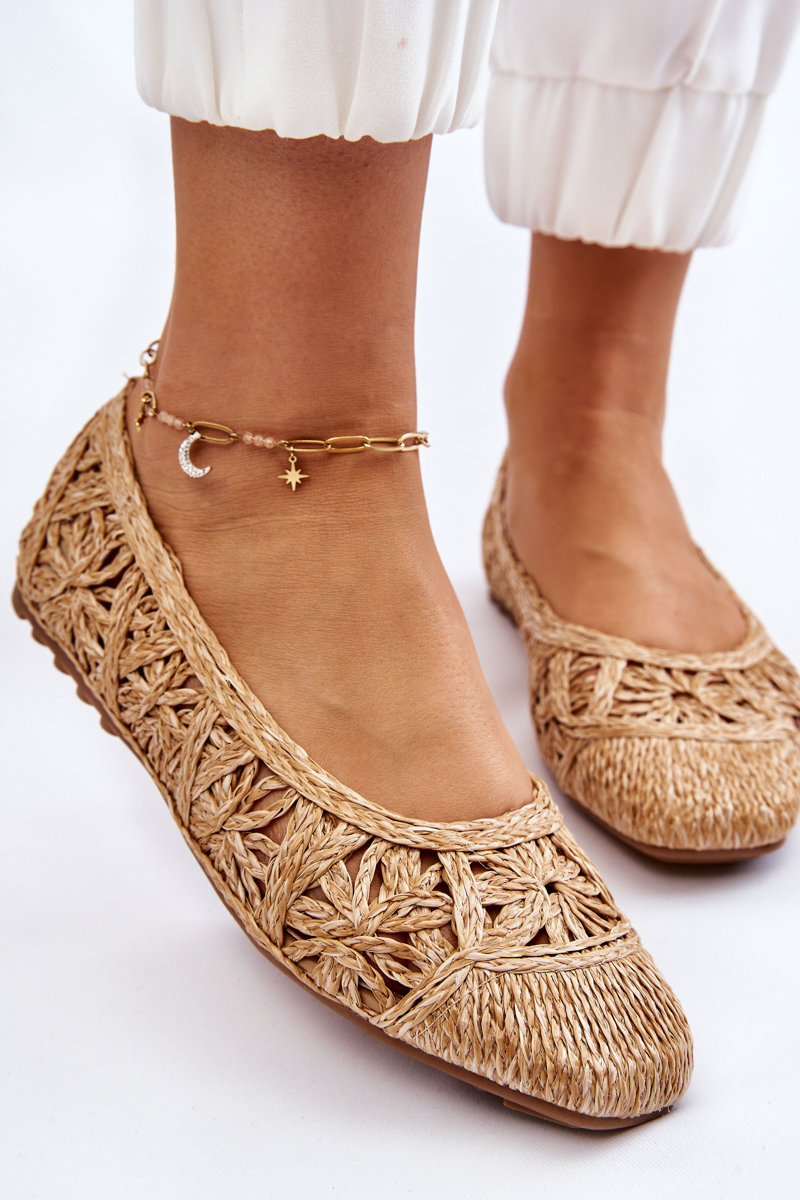 Baleriny Ażurowe Modne Beżowe Thiago
