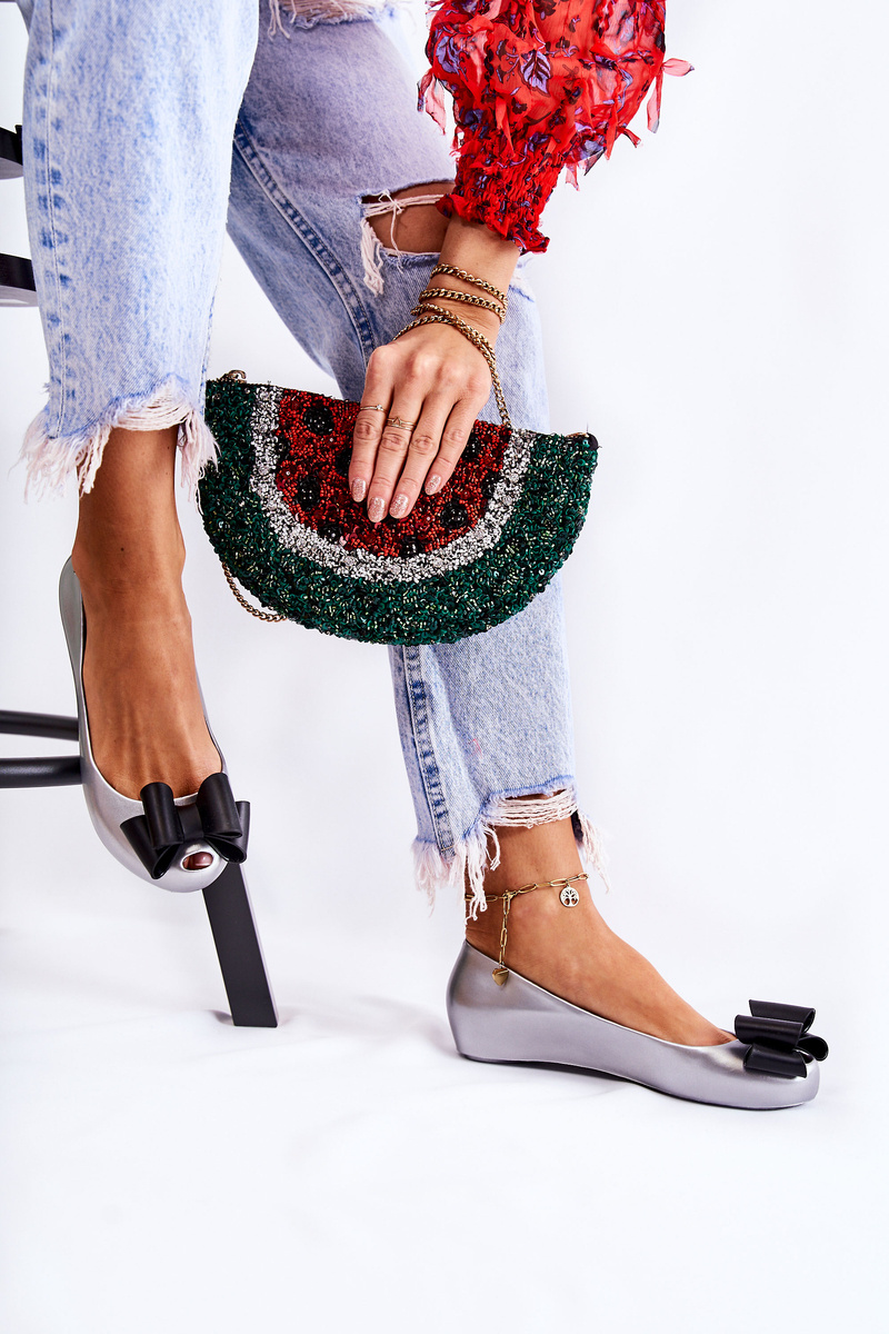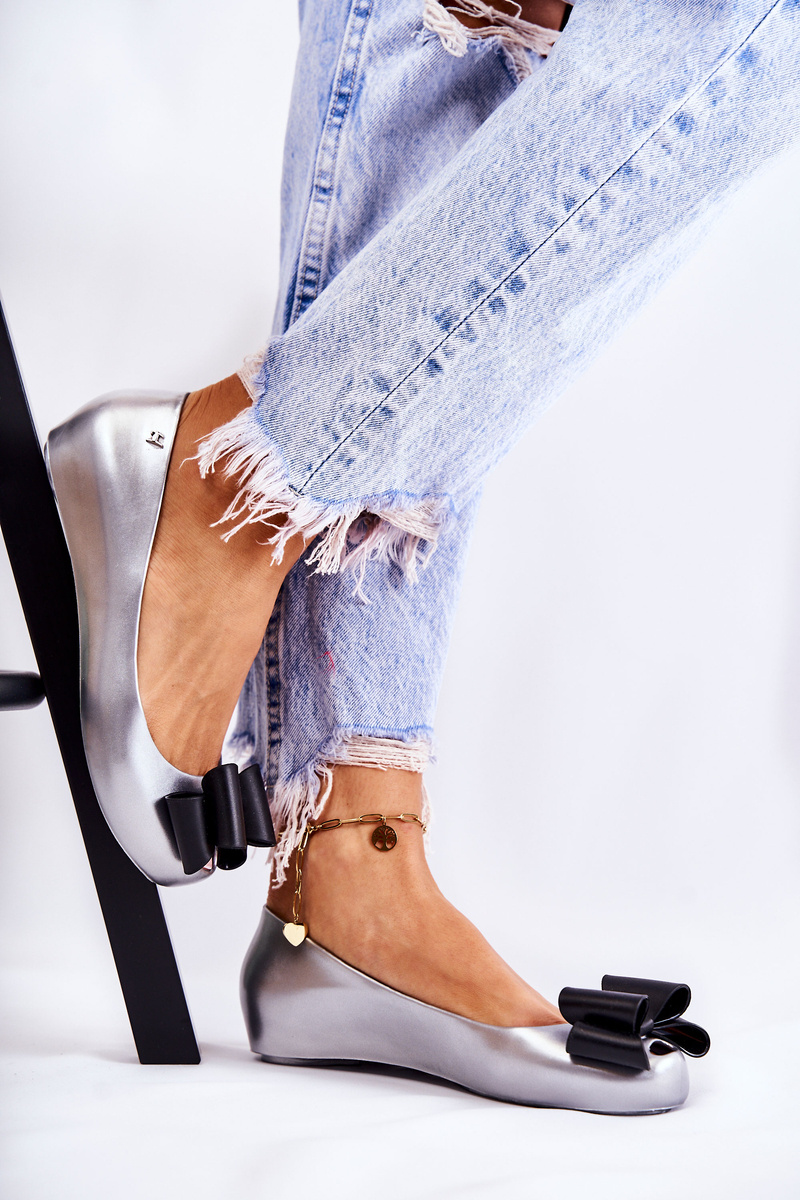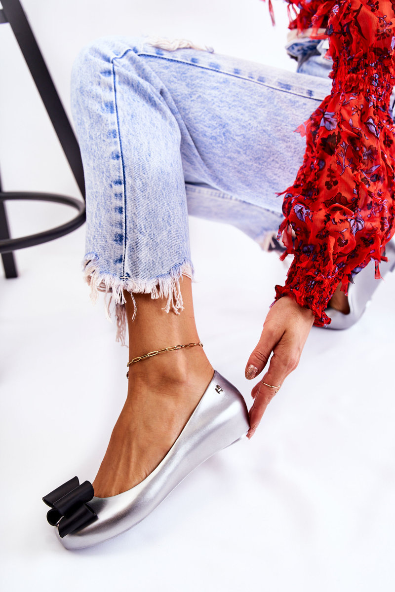 Baleriny Damskie Gumowe Kokarda Srebrne Florret