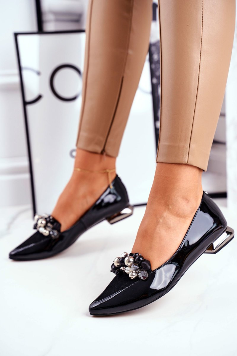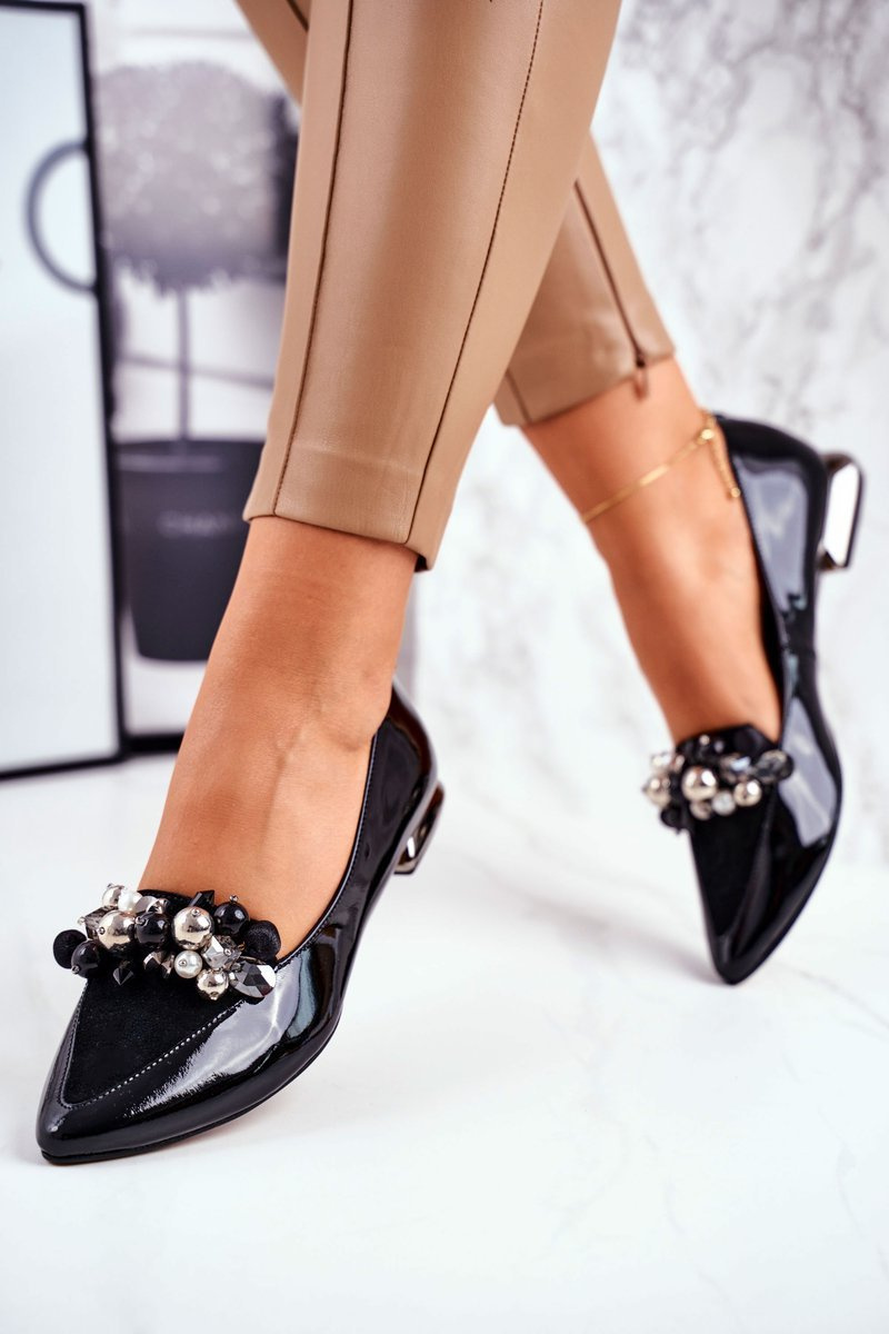 Baleriny to niewątpliwie jedne z najwygodniejszych butów, które pasują do wszystkiego. Prezentowany model wykonany został w całości z lakierowanej skóry, która sprawia, że są bardzo eleganckie a dodatkowo bardzo wygodne. Modne zdobienie w postaci dużych koralików na nosku podkreśla ich wyjątkowy styl. Podczas wyboru rozmiaru prosimy sugerować się tabelą rozmiarów.