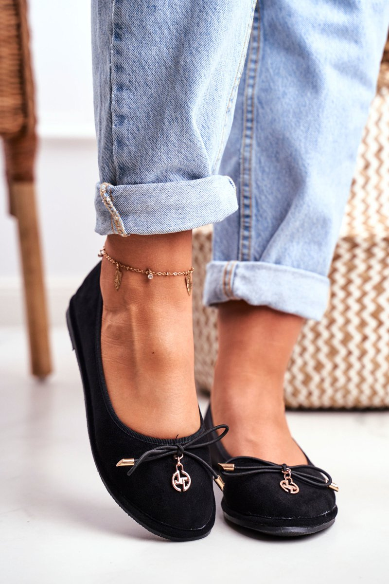 Baleriny Damskie Lu Boo Zamszowe Czarne Layla