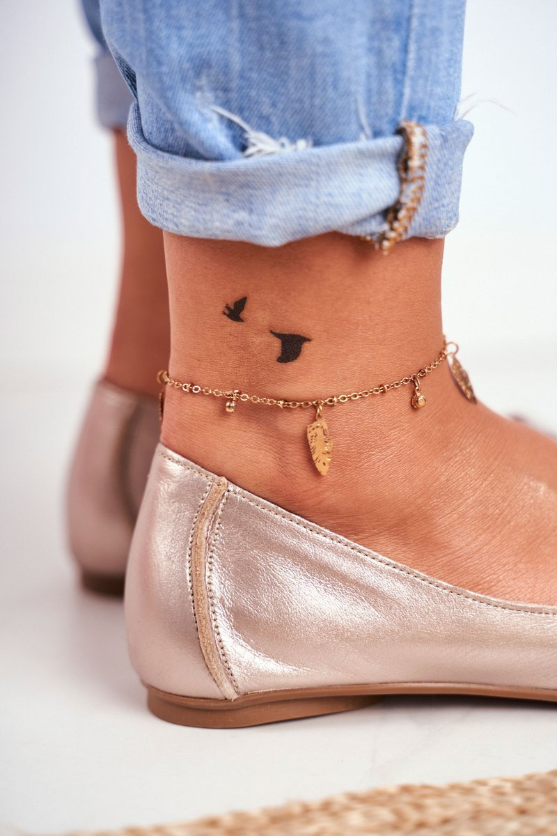 Baleriny Damskie Maciejka Skórzane Złote 03497-25