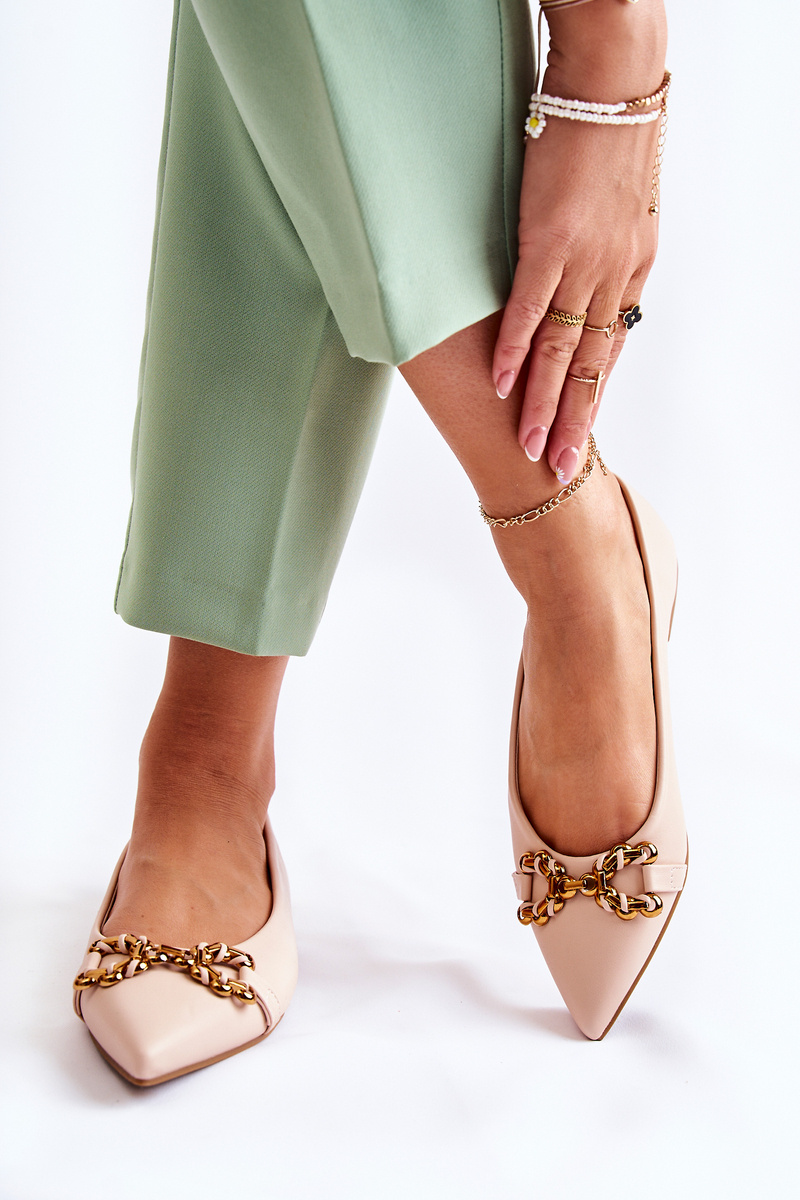 Baleriny Damskie Skóra Szpic Ozdoba Beżowe Carlos
