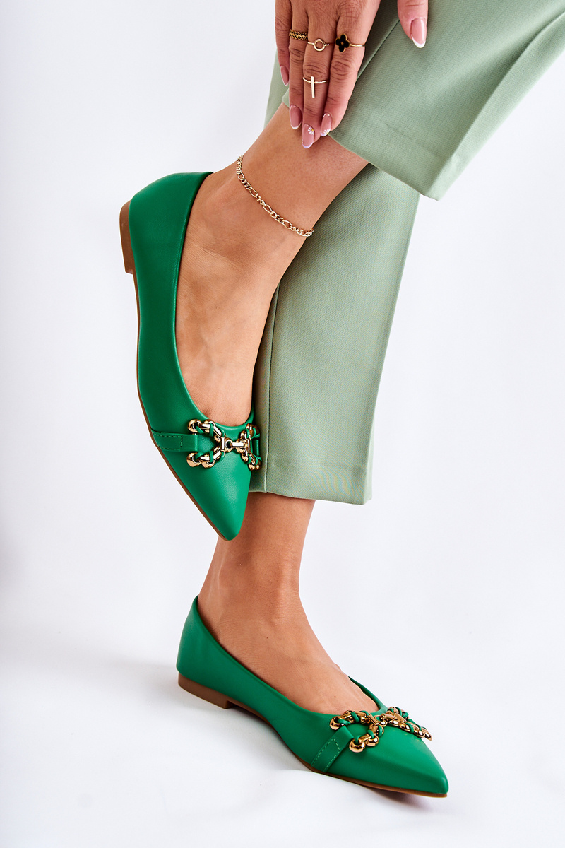 Baleriny Damskie Skóra Szpic Ozdoba Zielone Carlos