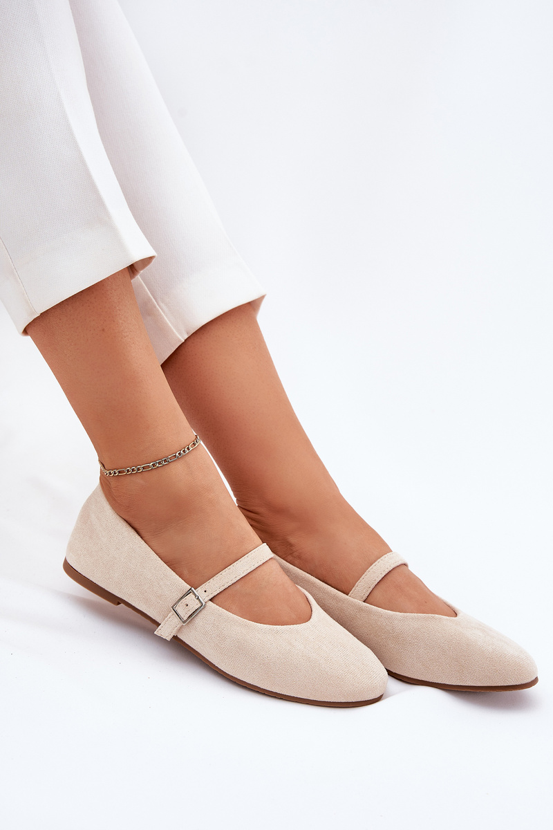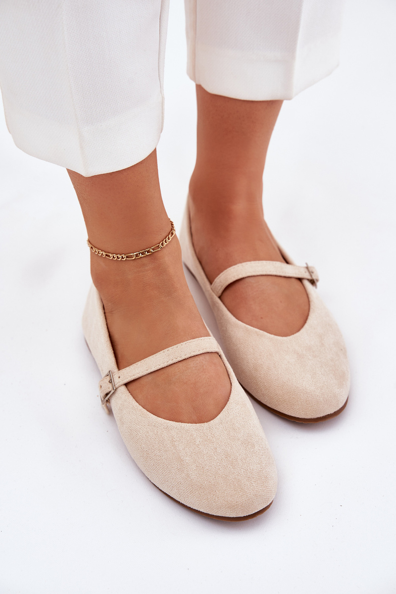 Baleriny Płaskie Z Paskiem Eko Zamszowe Beżowe Tirilina
