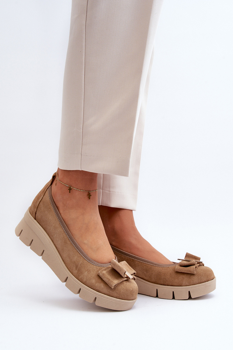 Baleriny Platforma Skóra Ozdoba Beżowe Lewski 3384
