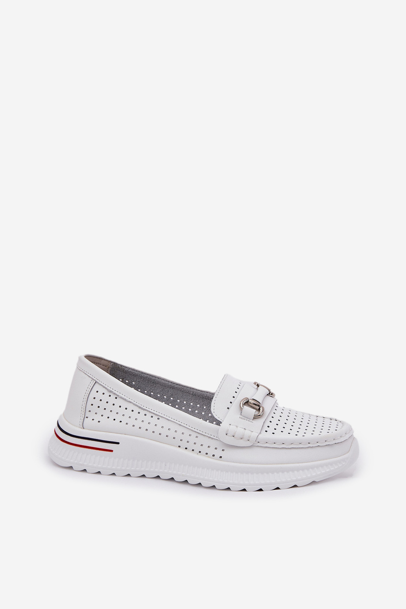 Baleriny Skóra Naturalna Ażurowe Lekkie Białe Vinceza 95331