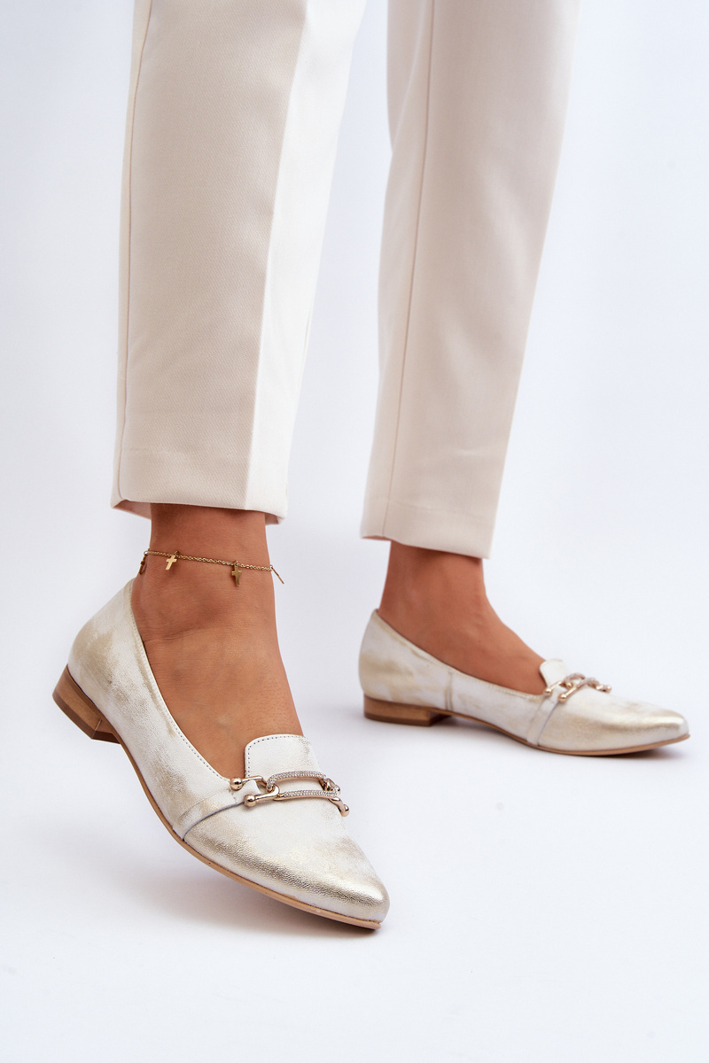 Baleriny Skóra Ozdoba Złoto-Białe Zazoo 2885