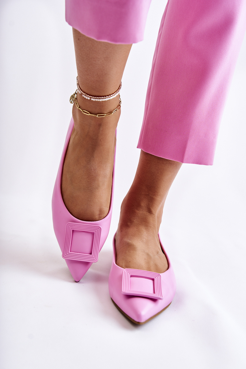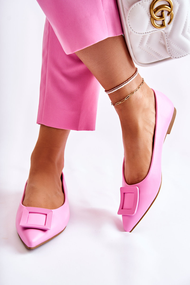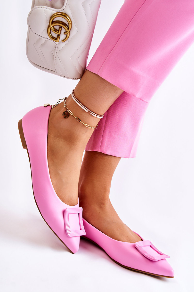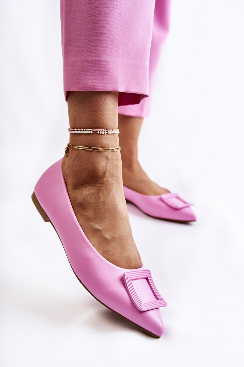 Baleriny to niewątpliwie jedne z najwygodniejszych butów. Wyjątkowy fason dopełni wiele stylizacji. Świetnie będą prezentować się na co dzień do pracy, jak i na różnego rodzaju spotkania. Wykonane z eko skóry. Miękka wkładka zapewni komfort i wygodę przez cały dzień. Z przodu znajduje się ozdobny, kwadratowy element. Nosek w szpic. Osadzone na antypoślizgowej podeszwie.