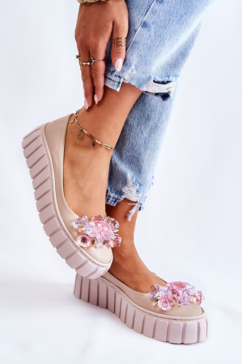 Baleriny Skórzane Platforma Kolorowa Ozdoba Beżowe Ladette
