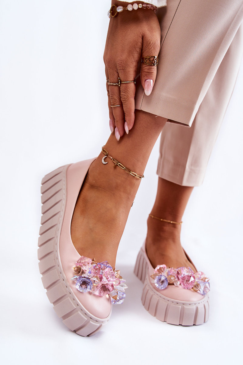 Baleriny Skórzane Platforma Kolorowa Ozdoba Różowe Ladette