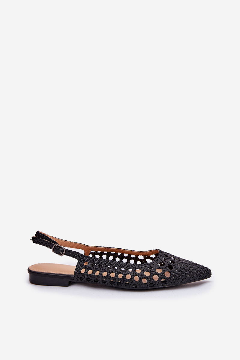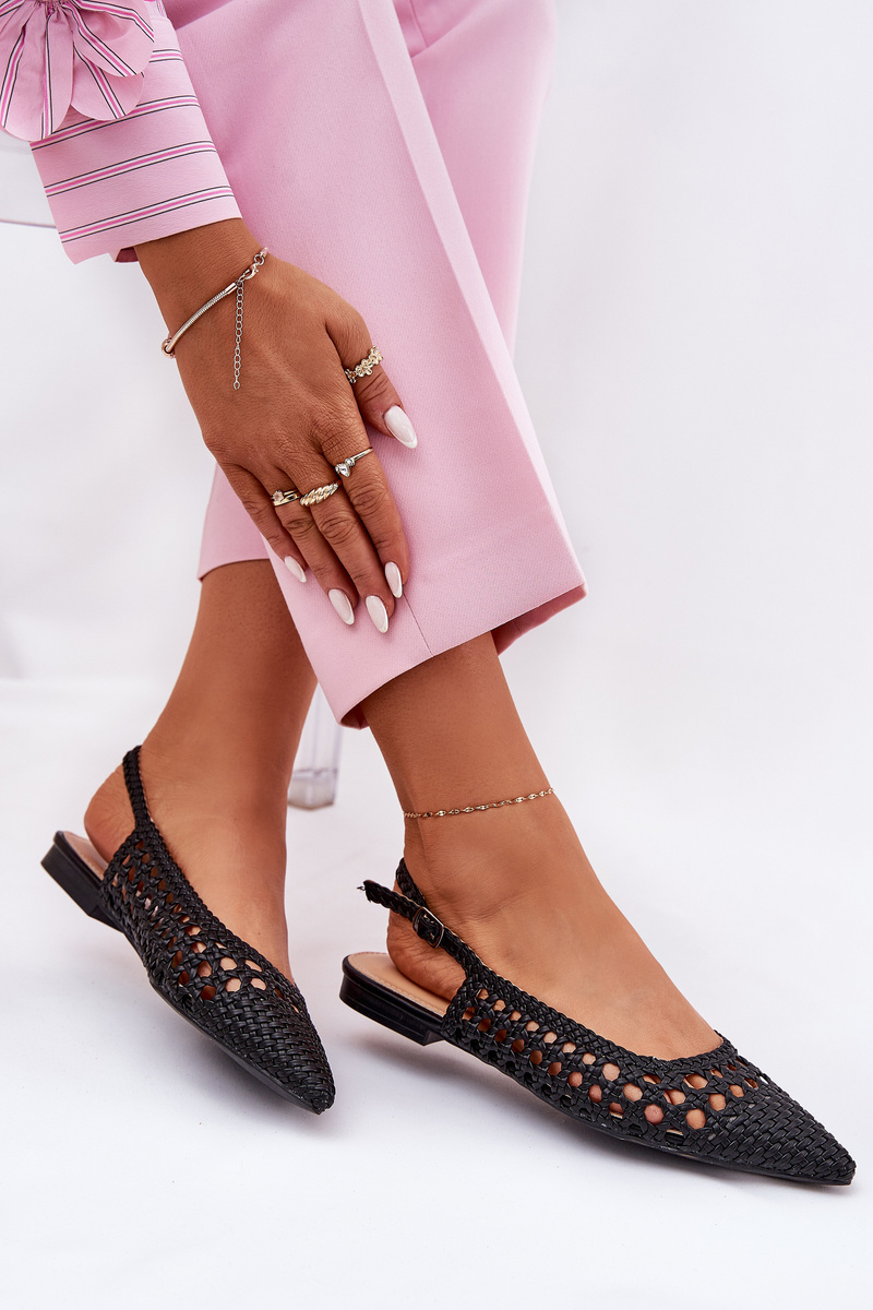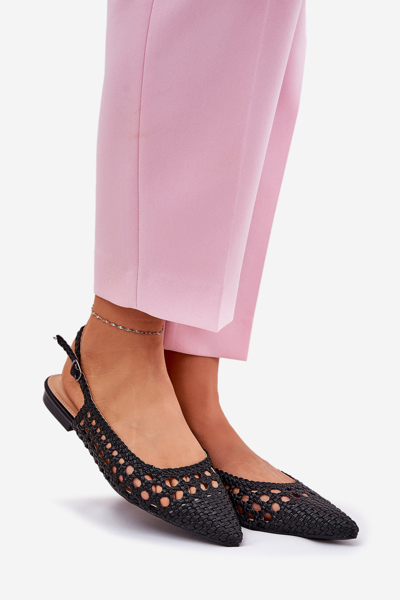 Baleriny Z Plecionką I Szpiczastymi Noskami Na Płaskim Obcasie Czarne Carollese