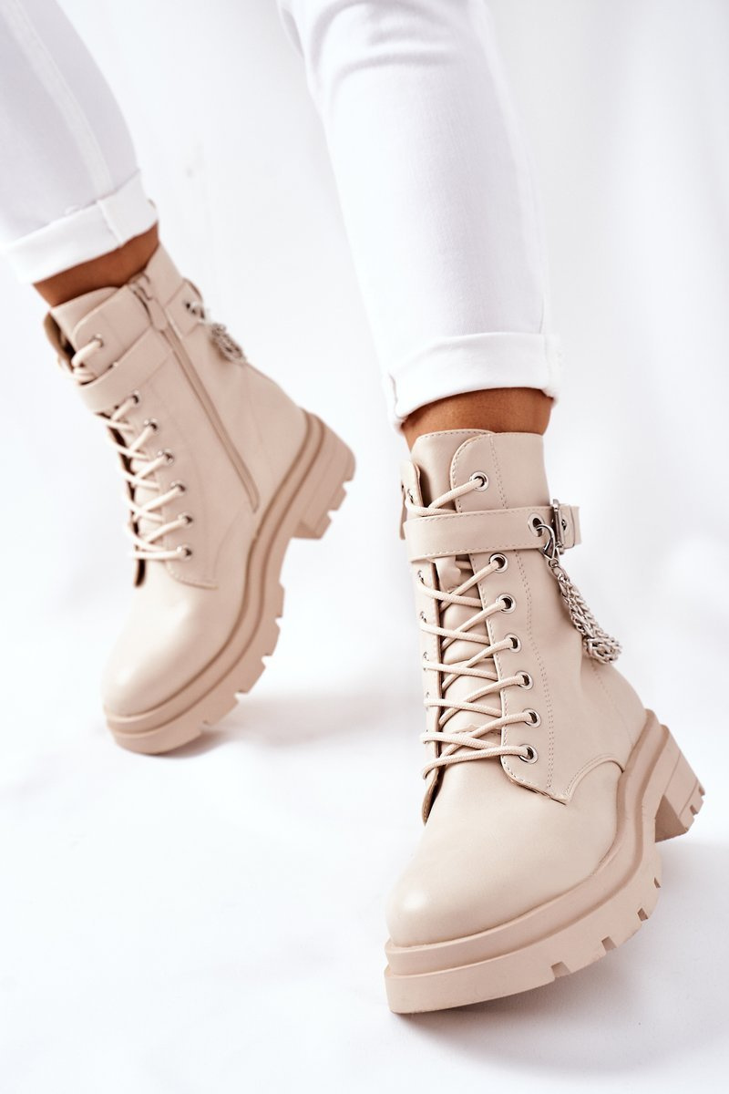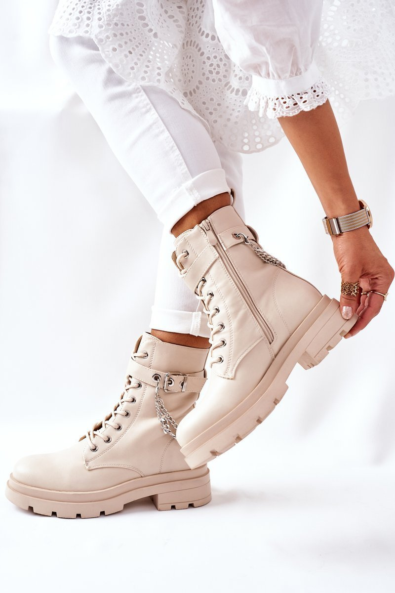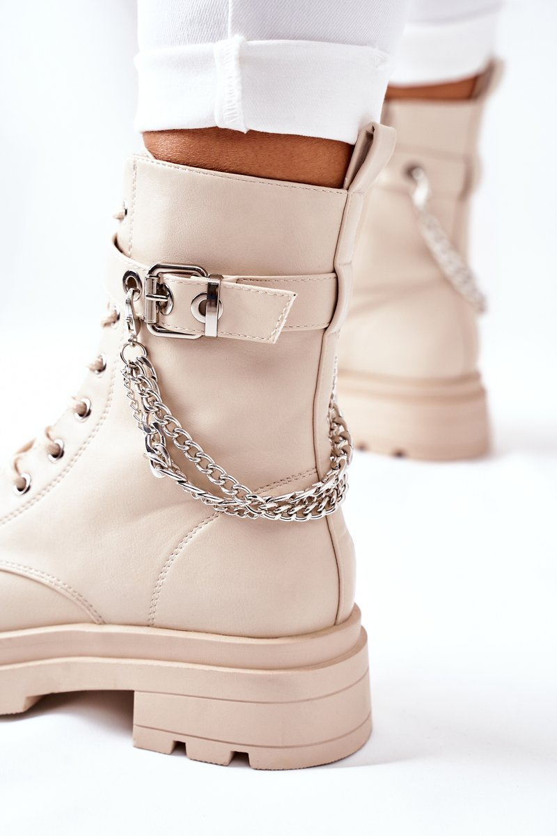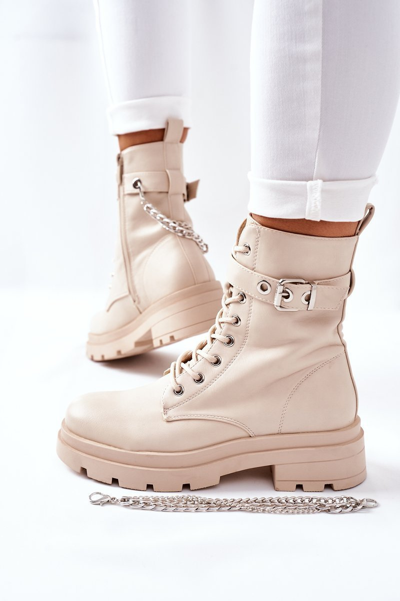 Opinie o Beżowe Workery Botki z Łańcuchem Midtown