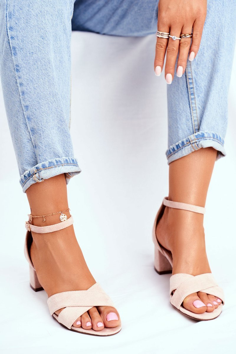 Opinie o Beżowe Zamszowe Sandałki na Słupku Nela