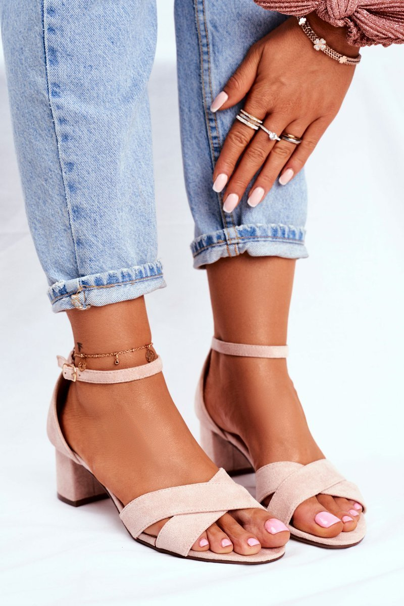 Beżowe Zamszowe Sandałki na Słupku Nela