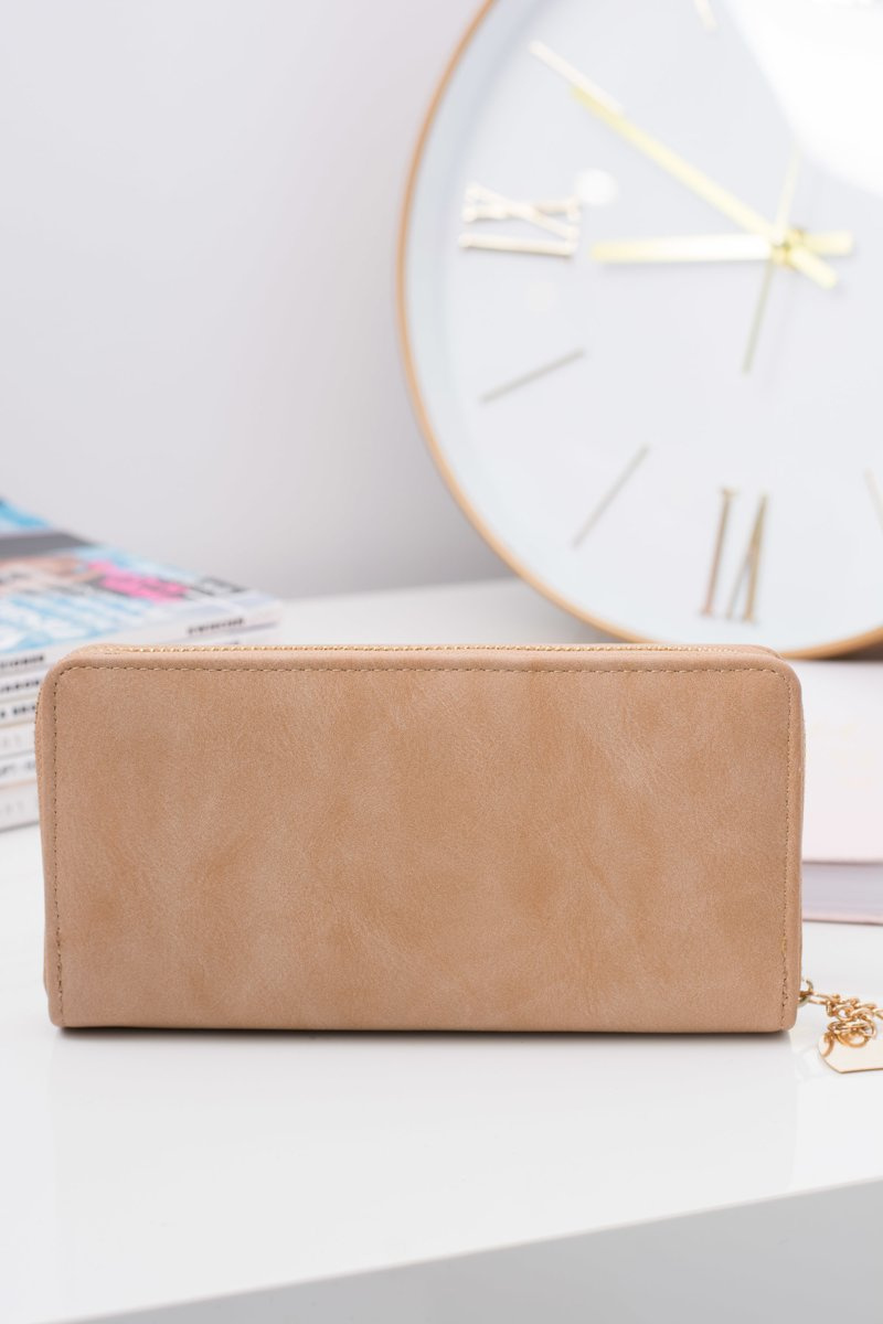 Beżowy Damski Duży Portfel Brelok Złote Serce