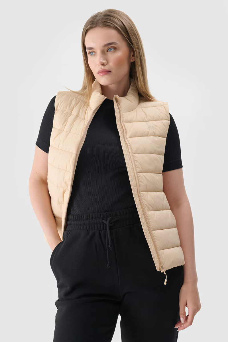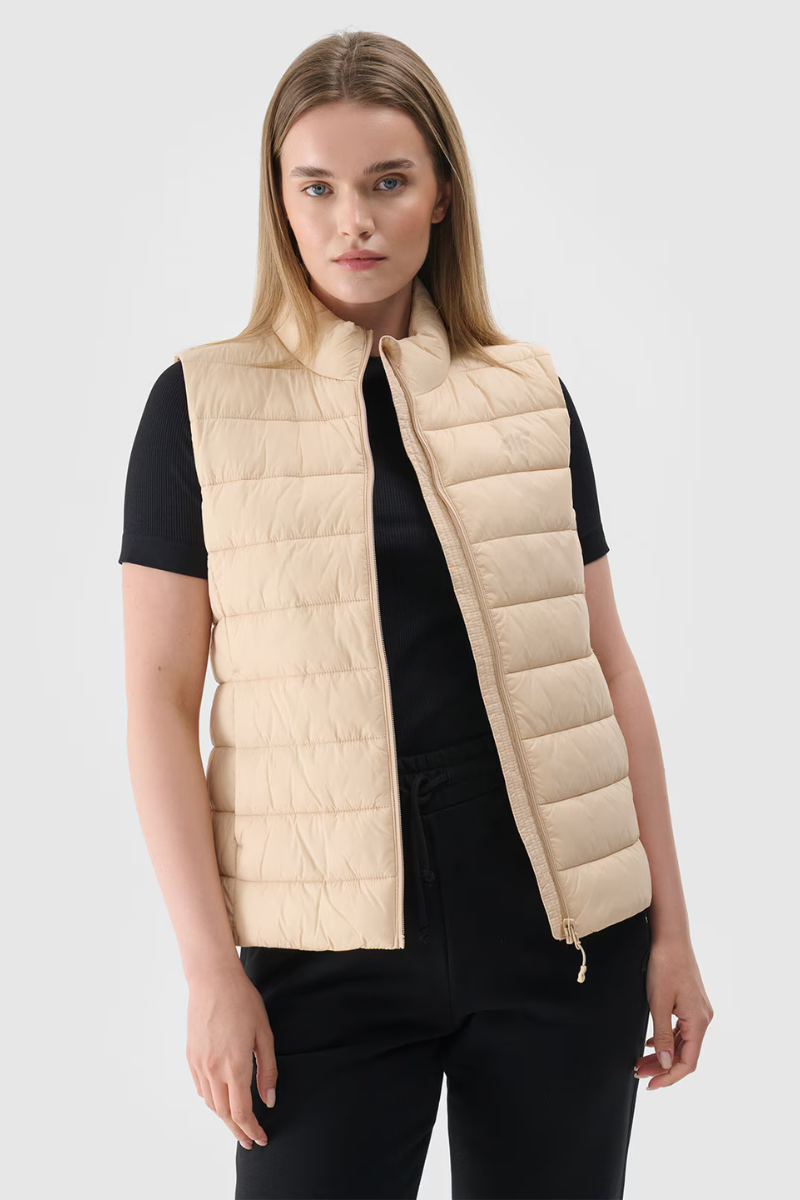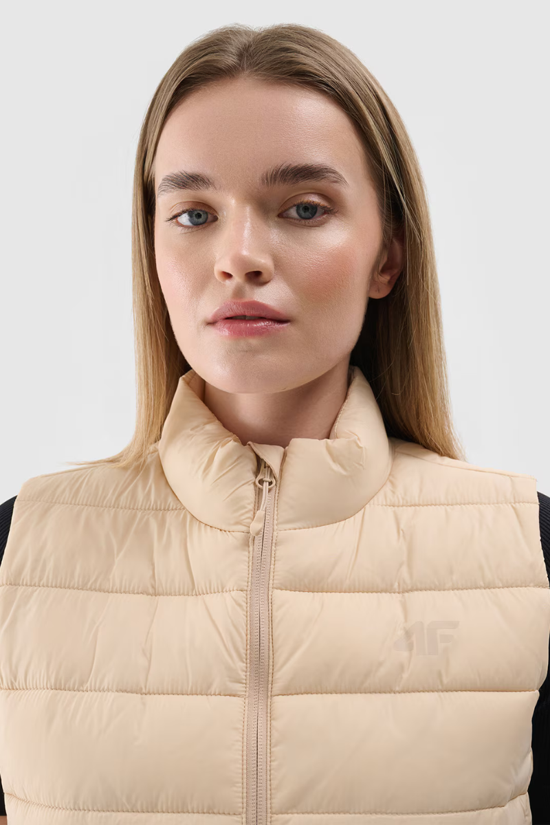 Bezrękawnik Damski Puchowy Ze Stójką 4F 4FWAW24TVJAF139-83S Beżowy