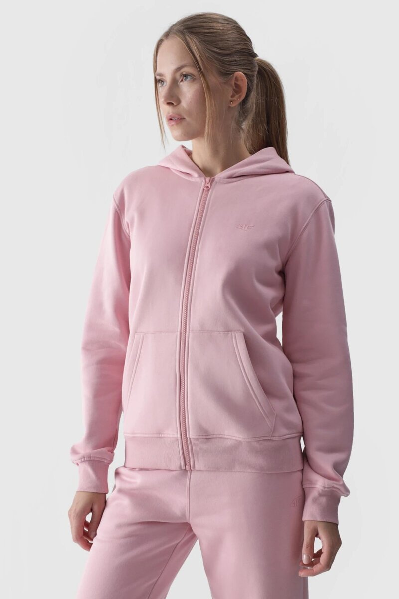 Bluza Damska Dresowa Z Kapturem Rozpinana Bawełniana 4F Różowa 4FWMM00TSWSF1467-56S