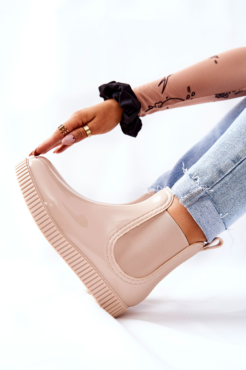 Błyszczące Kalosze Na Platformie Beżowe Waterfall