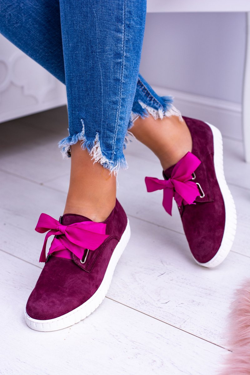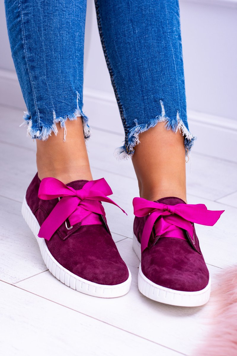 Opinie o Bordowe Skórzane Damskie Tenisówki Loop