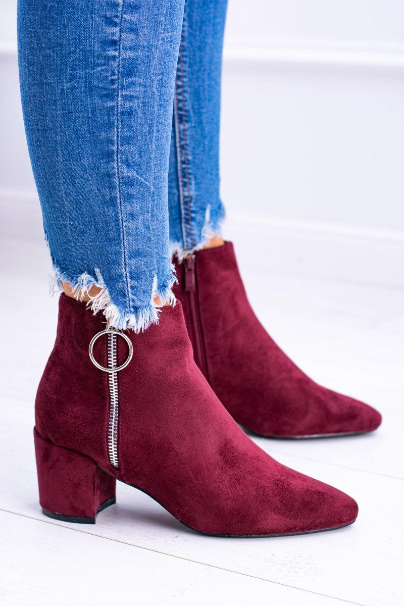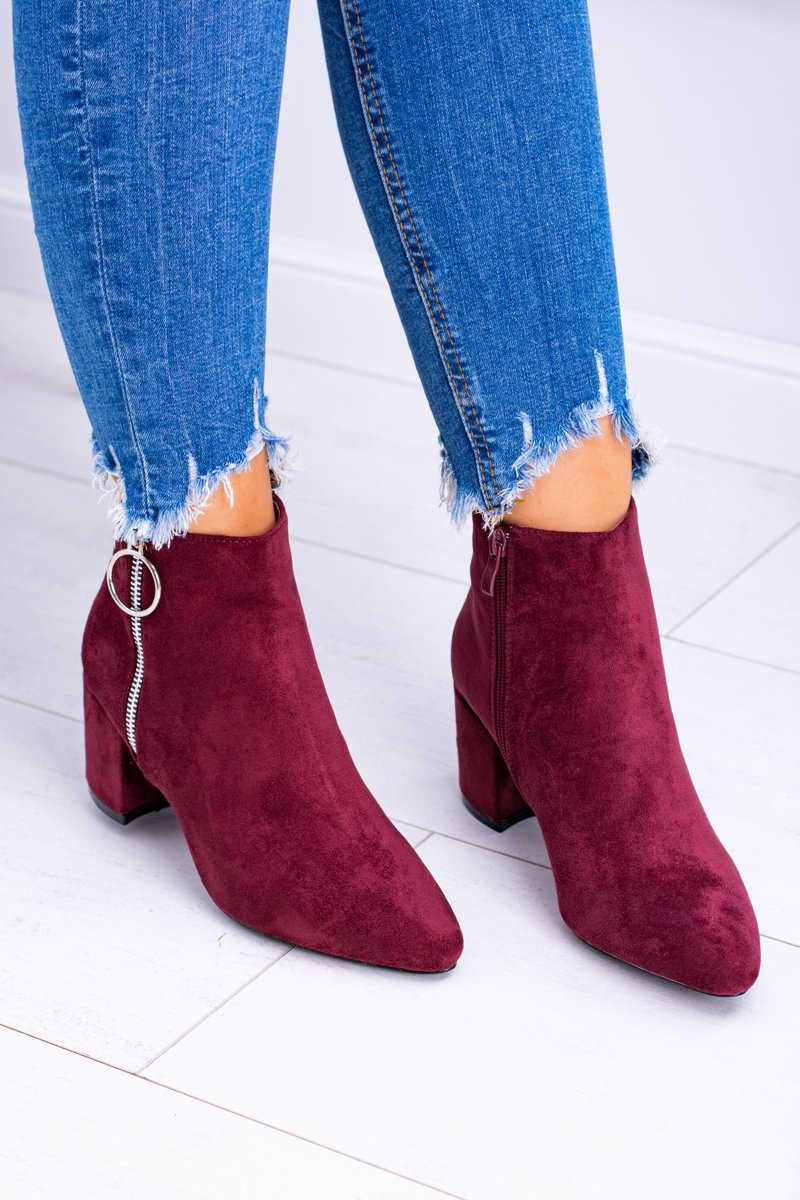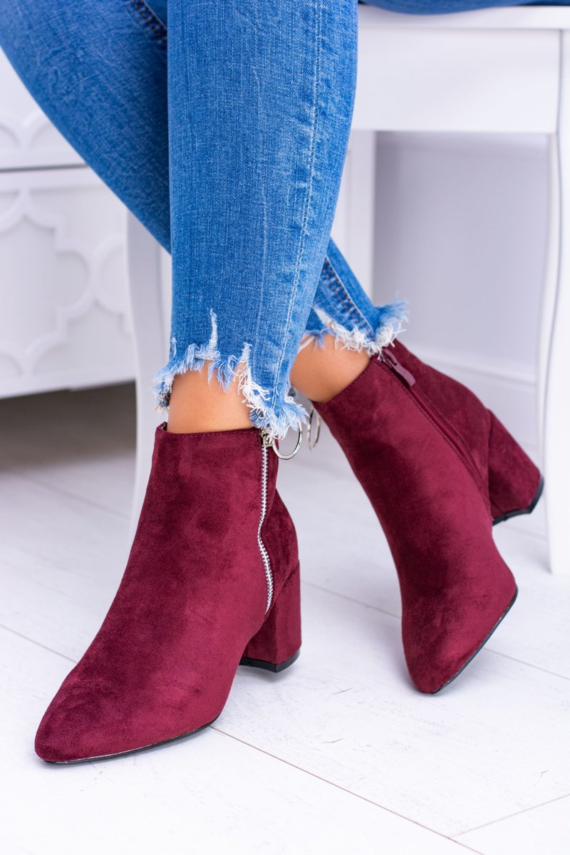 Bordowe Zamszowe Botki Na Słupku w Szpic Jonnes