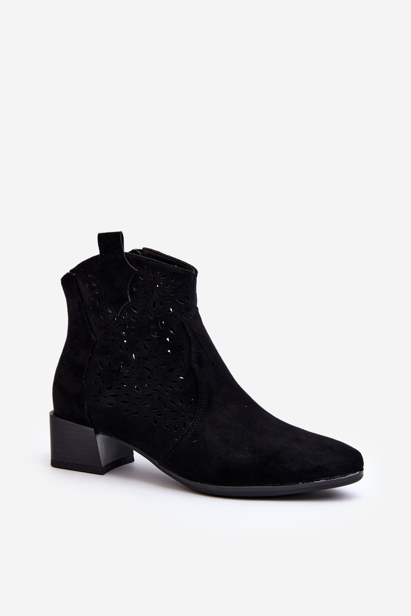 Botki Ażurowe Damskie Czarne Madalina 28238