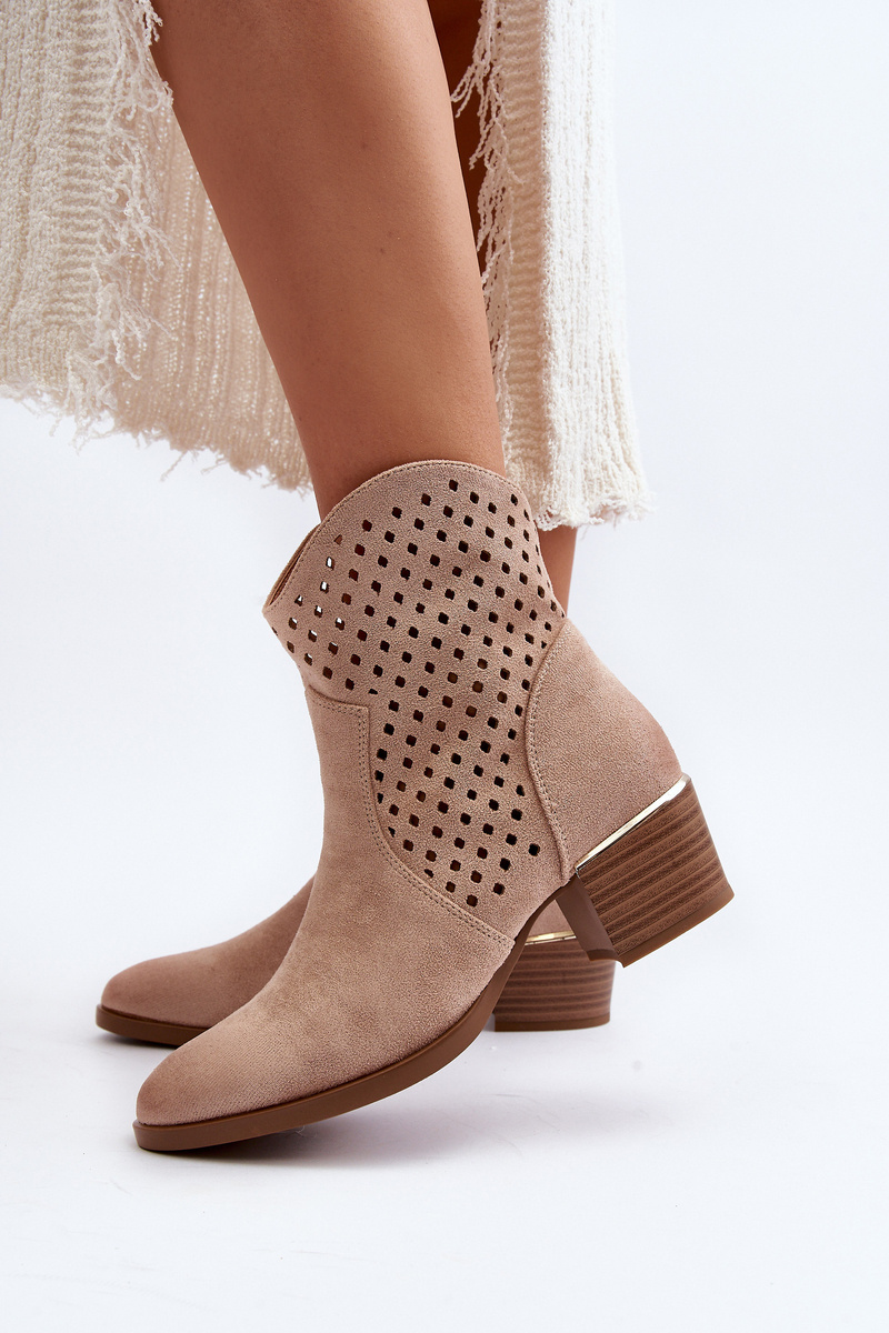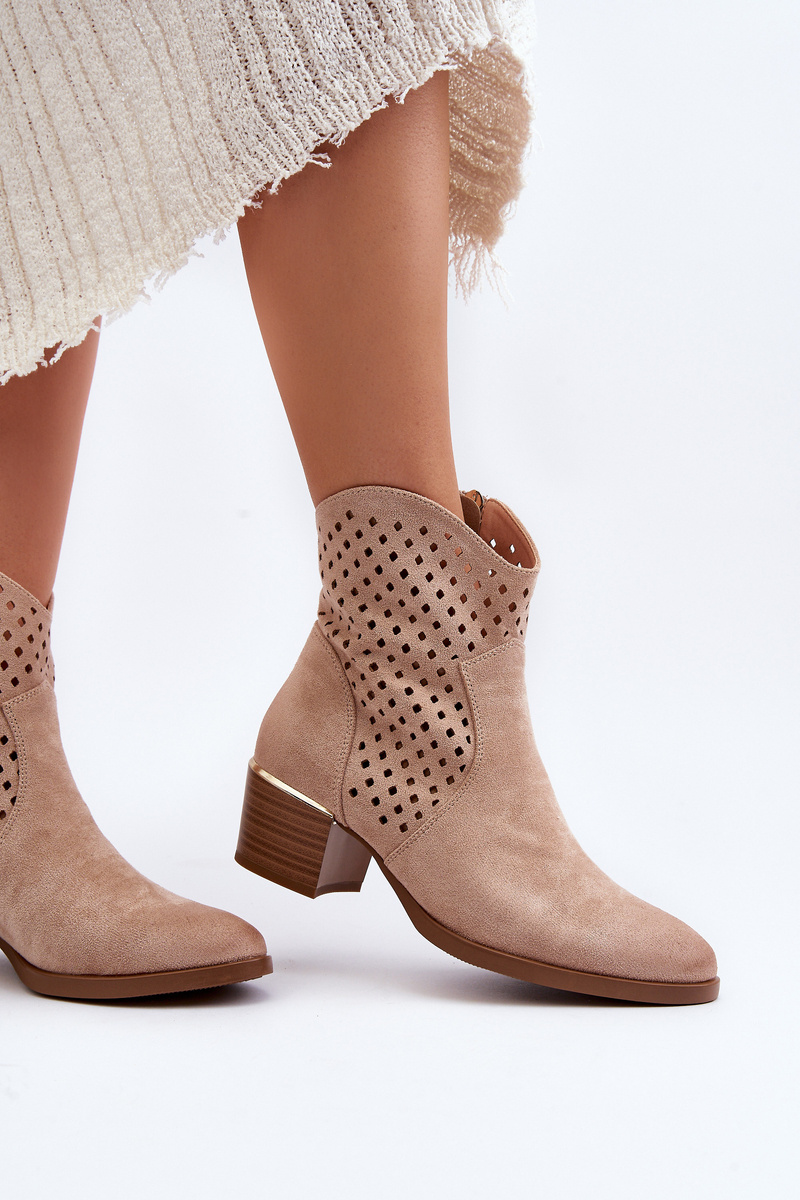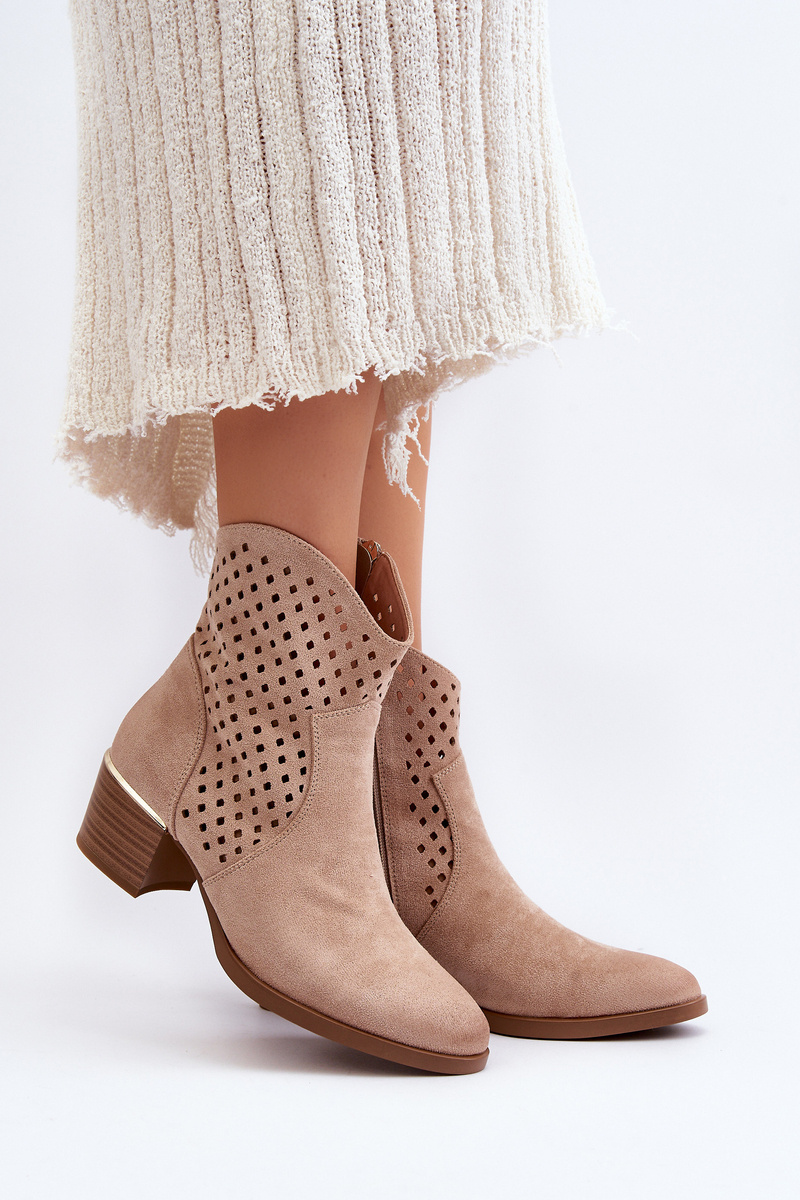Botki Ażurowe Damskie Niski Obcas Beżowe Cilvana 58239